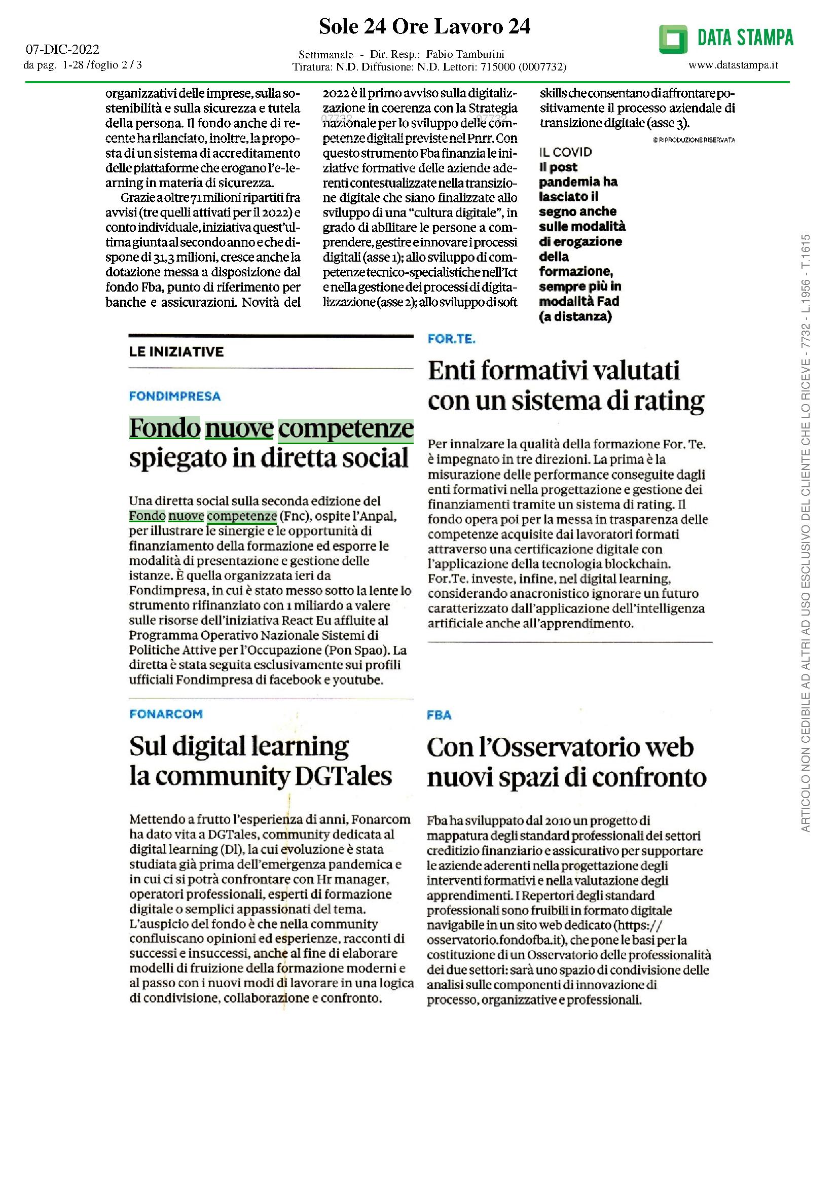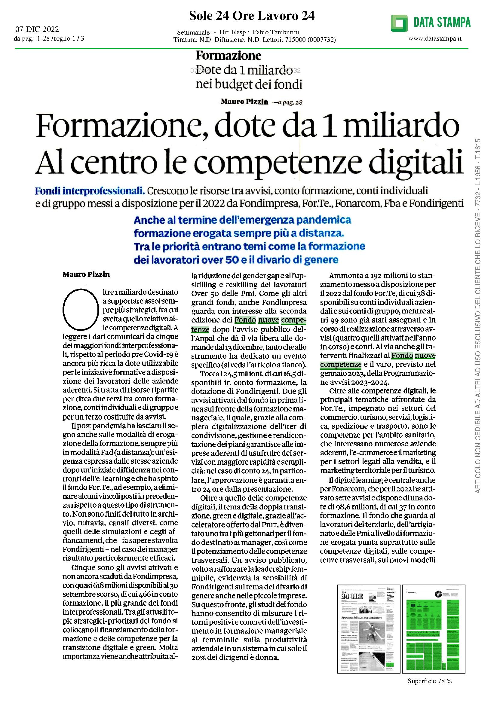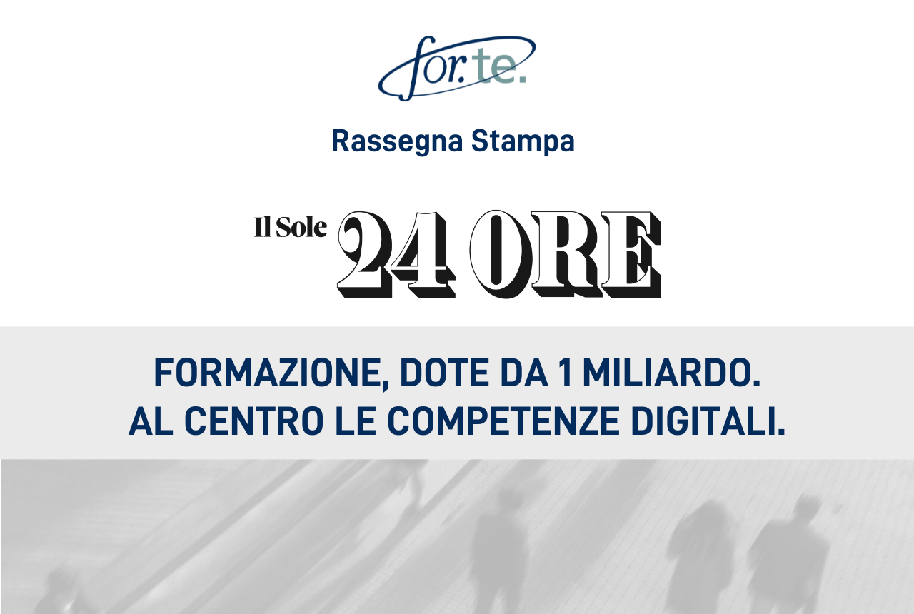 Formazione, dote da 1 miliardo. Al centro le competenze digitali Pubblicato il07/12/2022 Corriere della Sera – 7 Dicembre 2022 Ascolta le pillole di Radio 24 17/01/202417/01/2024 Fondo Nuove Competenze: un meccanismo da rivedere 21/12/202321/12/2023 Ripensare la formazione per entrare nell’Europa delle competenze 23/11/202323/11/2023 L’IMPORTANZA DELLE RISORSE UMANE: FORMAZIONE CONTINUA COSì SI VINCE LA SFIDA ‘AI’ 13/11/202323/11/2023 Scatto in avanti delle imprese italiane sull’aggiornamento del personale 07/11/202323/11/2023 Fondo For.Te., “Dare forma al futuro”: II Forum sulla formazione continua 03/11/202323/11/2023