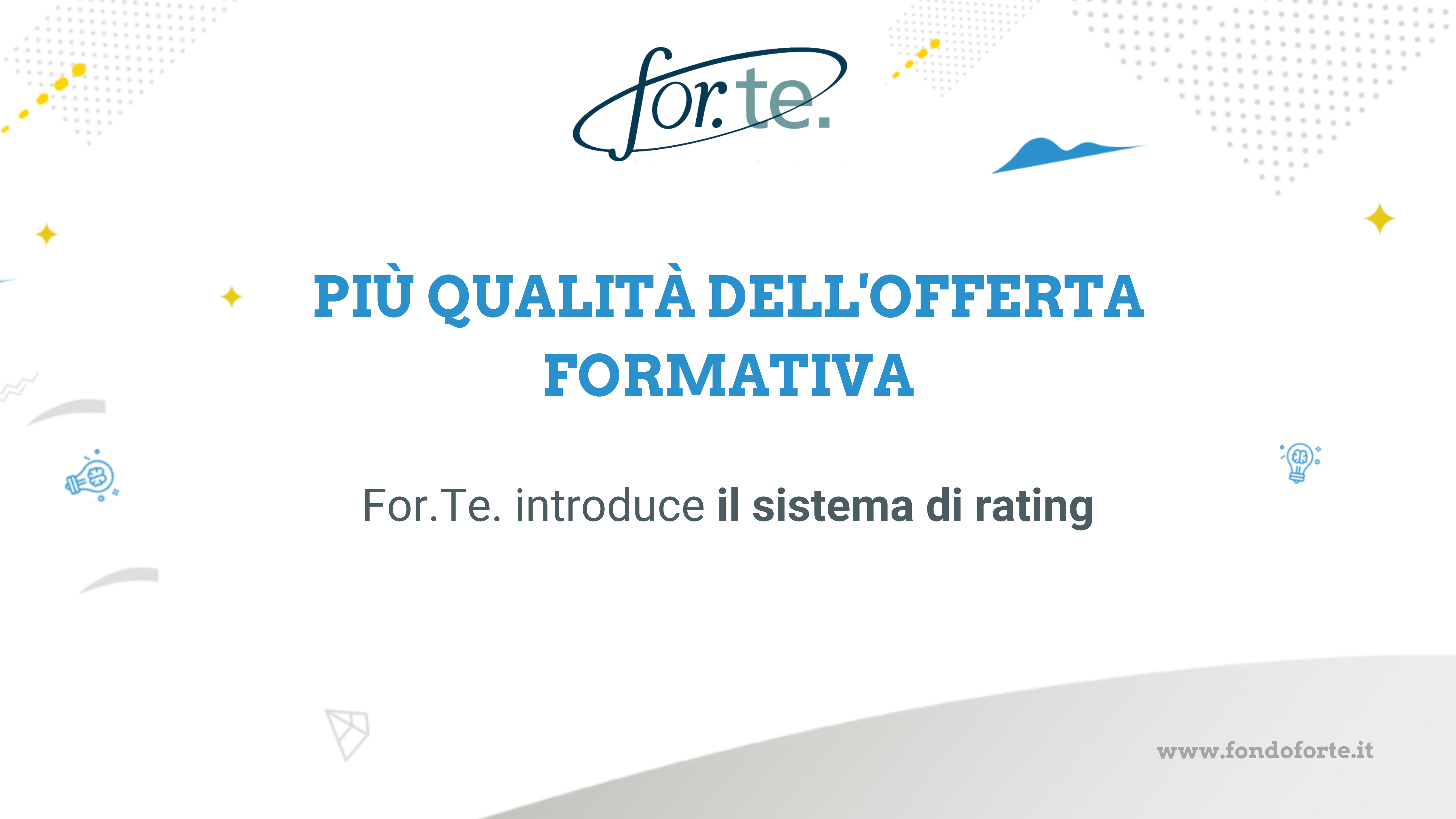 For.Te. ha introdotto il sistema di rating finalizzato a valutare le performance degli enti erogatori della formazione: una garanzia per le aziende che si affidano a For.Te. e un modo per valorizzare i soggetti virtuosi.